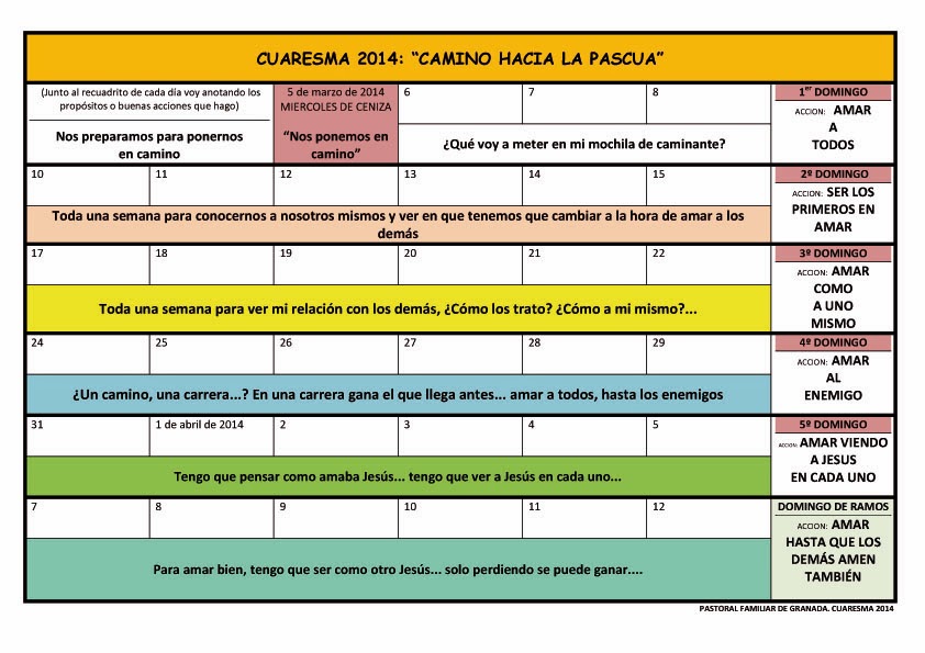 PASTORAL FAMILIAR ARCHIDIOCESIS DE GRANADA: CALENDARIO DE CUARESMA 2014 …